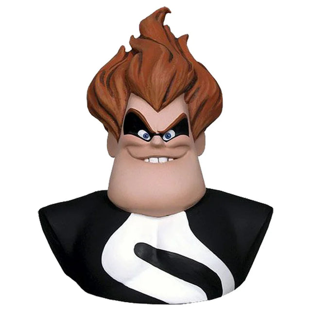 The NECA Pixar The Incredibles Syndrome Mini Bust is a meticulously crafted resin sculpture that captures the essence of Syndrome, the film's primary antagonist. Standing approximately 8.5 inches tall, this bust showcases Syndrome in his signature black and white superhero suit, complete with his distinctive red hair and menacing expression.